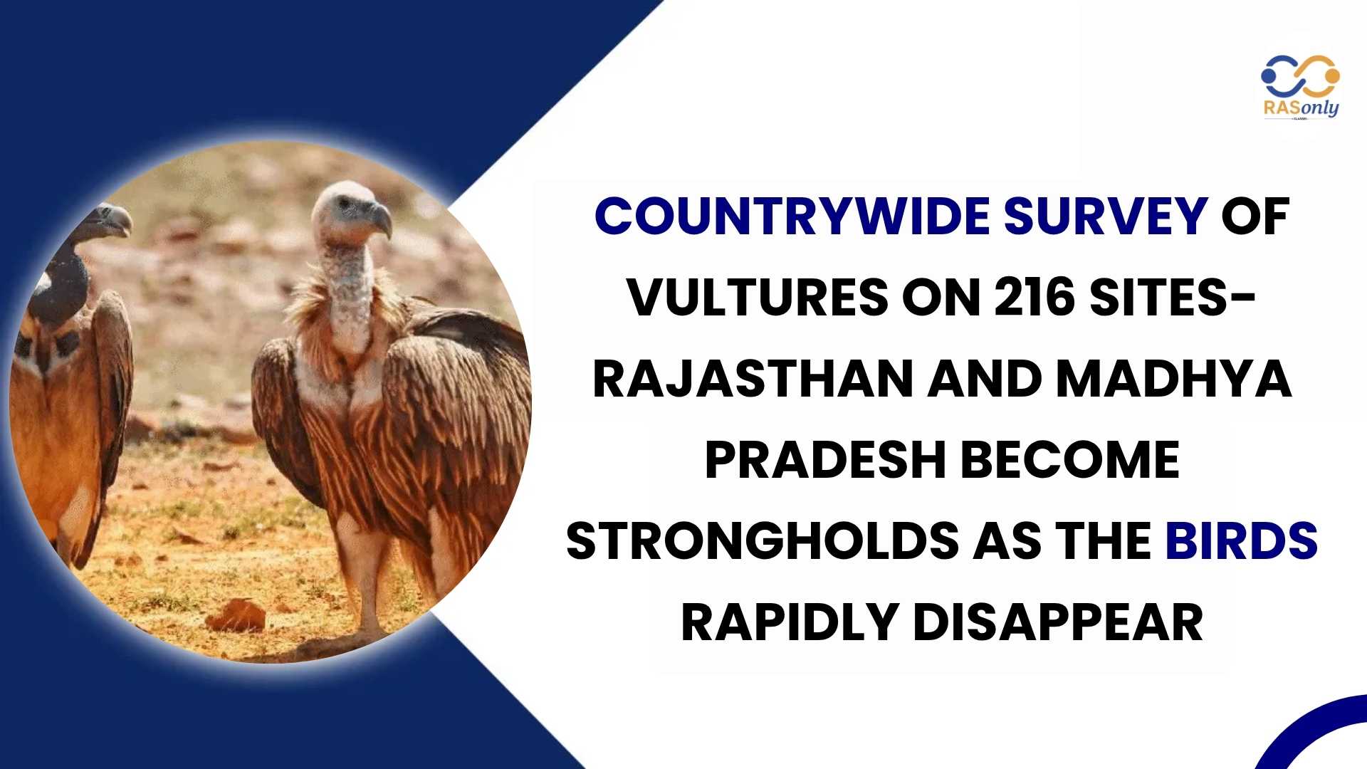 A nationwide survey (mentioning 216 sites, according to the news clipping) points to the fact that since the 1990s, the population of vultures in India has been dropping at a very rapid pace, and the states of Rajasthan and Madhya Pradesh can be mentioned as those places, where, due to the targeted conservation, the numbers can be stabilized. The report has blamed the losses mainly to v veterinary NSAIDs (especially diclofenac) in the cattle carcasses as well as habitat degradation and unsafe carcass dumps. Conversely, the Rajasthan and MP have scaled- vulture-safe zones, carcass management, rescue/breeding support and field monitoring, which combined are reducing the declines. The point is simple: banning of NSAIDs, safe alternatives (e.g., meloxicam/tolfenamic acid) and protection of major colonies and food sources are significant factors that will help to achieve a long-term recovery.