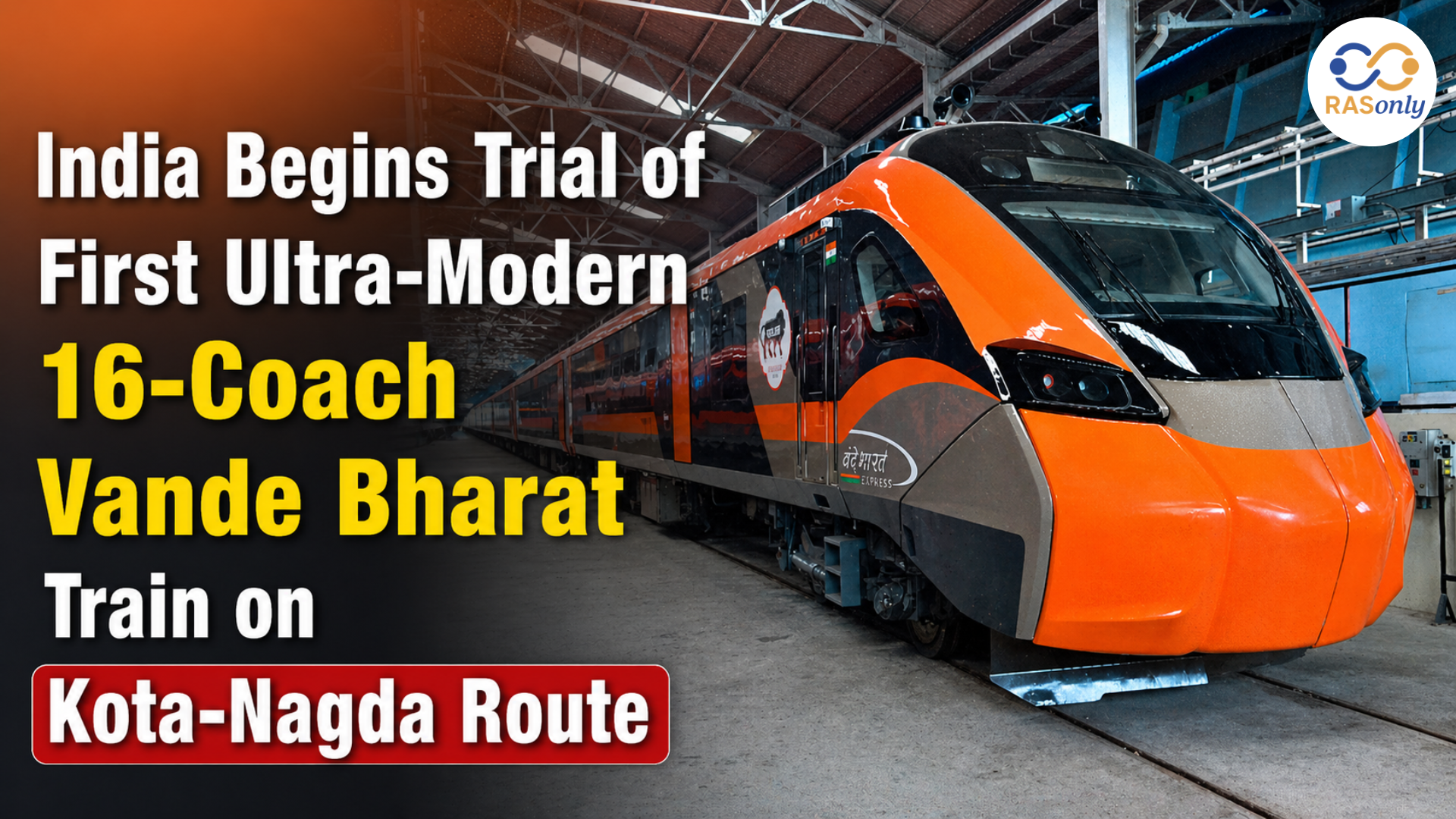 दिल्ली-मुंबई रेलमार्ग के कोटा-नागदा-शामगढ़ रेलखंड पर भारत की पहली अत्याधुनिक और तकनीक आधारित 16-डिब्बों वाली वंदे भारत ट्रेन रैक का परीक्षण शुरू हो गया है। परीक्षण सोमवार से शुरू हुआ और पूरे सप्ताह जारी रहेगा। इस रैक को रेल कोच फैक्ट्री, कपूरथला में तैयार किया गया है। यह विकास RAS परीक्षा की दृष्टि से महत्वपूर्ण है, क्योंकि यह भारतीय रेलवे के आधुनिकीकरण, भारत में निर्माण, तीव्र गतिशीलता, तकनीकी साझेदारी और अवसंरचना निर्माण से जुड़ा है।