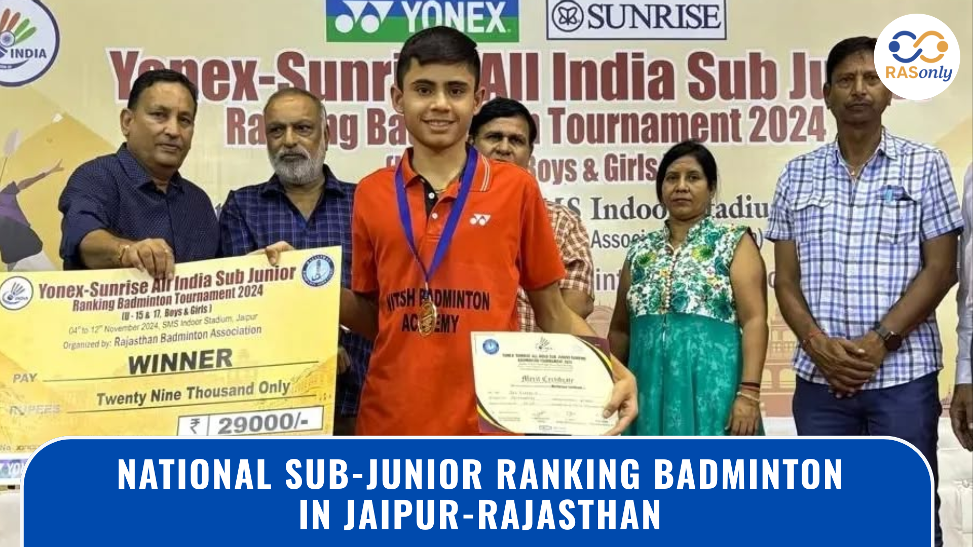 जयपुर में आयोजित नेशनल सब-जूनियर रैंकिंग बैडमिंटन—टूर्नामेंट के सबसे लंबे (72 मिनट) यू-15 बॉयज़ डबल्स फाइनल में राजस्थान की जोड़ी विजेता; अन्य वर्गों के विजेताओं के परिणाम भी शामिल