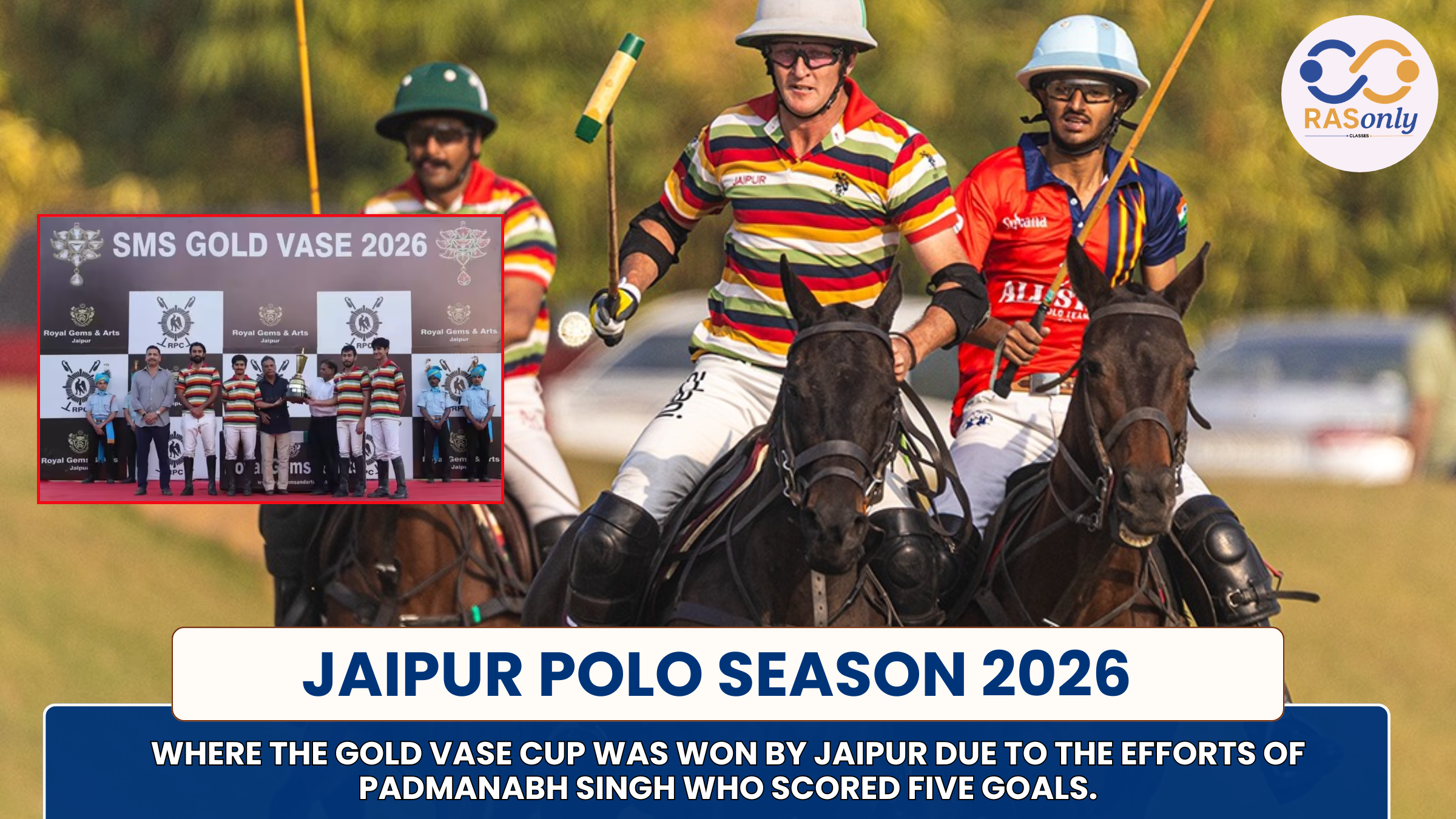 Explanation : Jaipur was the winner of the final of the Gold Vase Cup, beating Krishna Polo. The game was the Jaipur Polo Season 2026 and the result was 6-5.5 goals in favour of Jaipur. What was interesting was that the win was made more special due to a close final against a team that had a handicap lead.