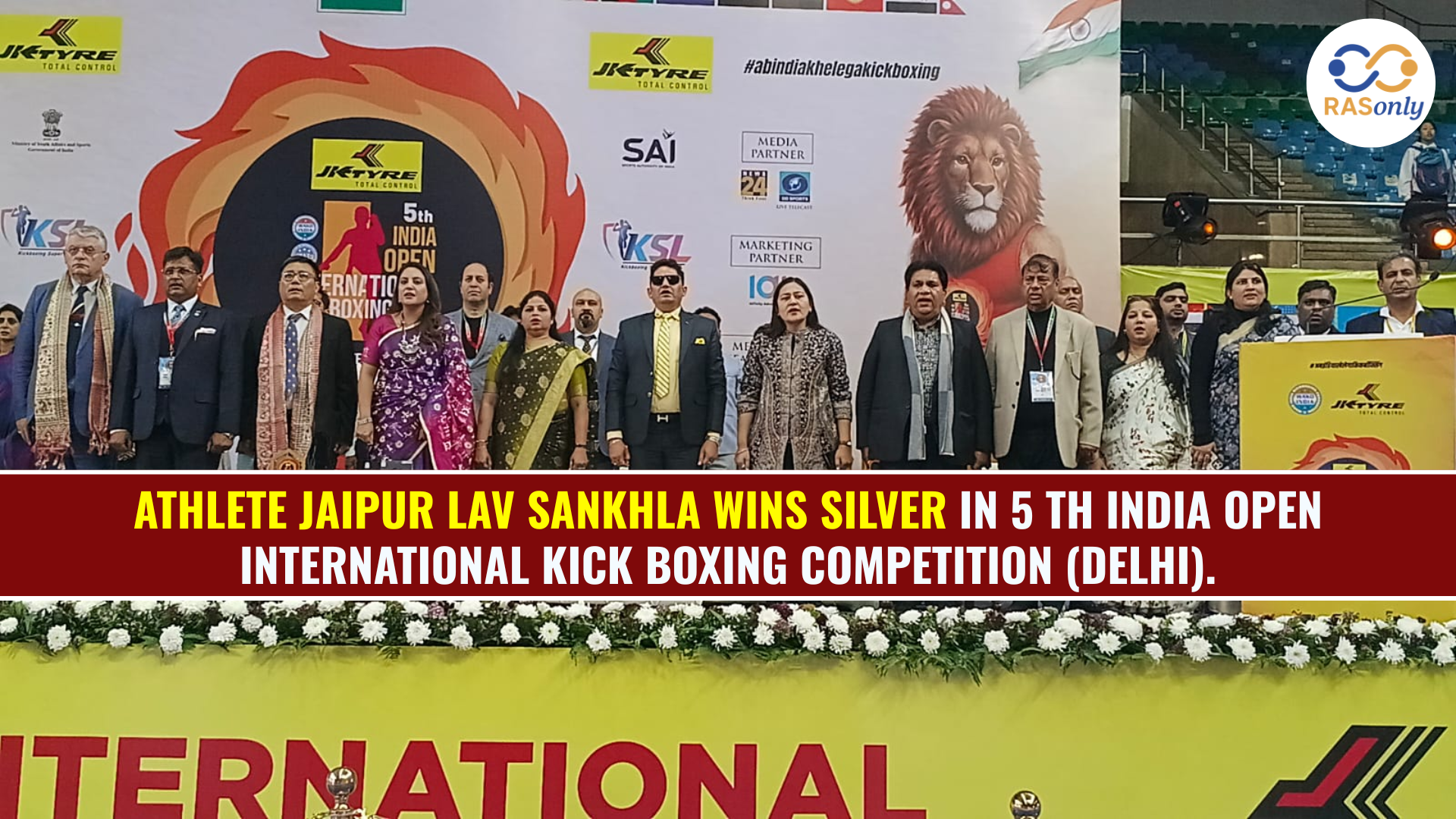 Lav Sankhla of Jaipur secured a silver medal at the 5 th India open International Kick Boxing Competition in Indira Gandhi Stadium, Delhi. He won the silver in the -89 kg weight category in the Juniors. Lav had to finish second in the last match where he was against a Turkish player. The outcome emphasizes the state existence of Rajasthan in high-end kick boxing matches and is an apt sports performance of the state in present affairs-based exam preparation.