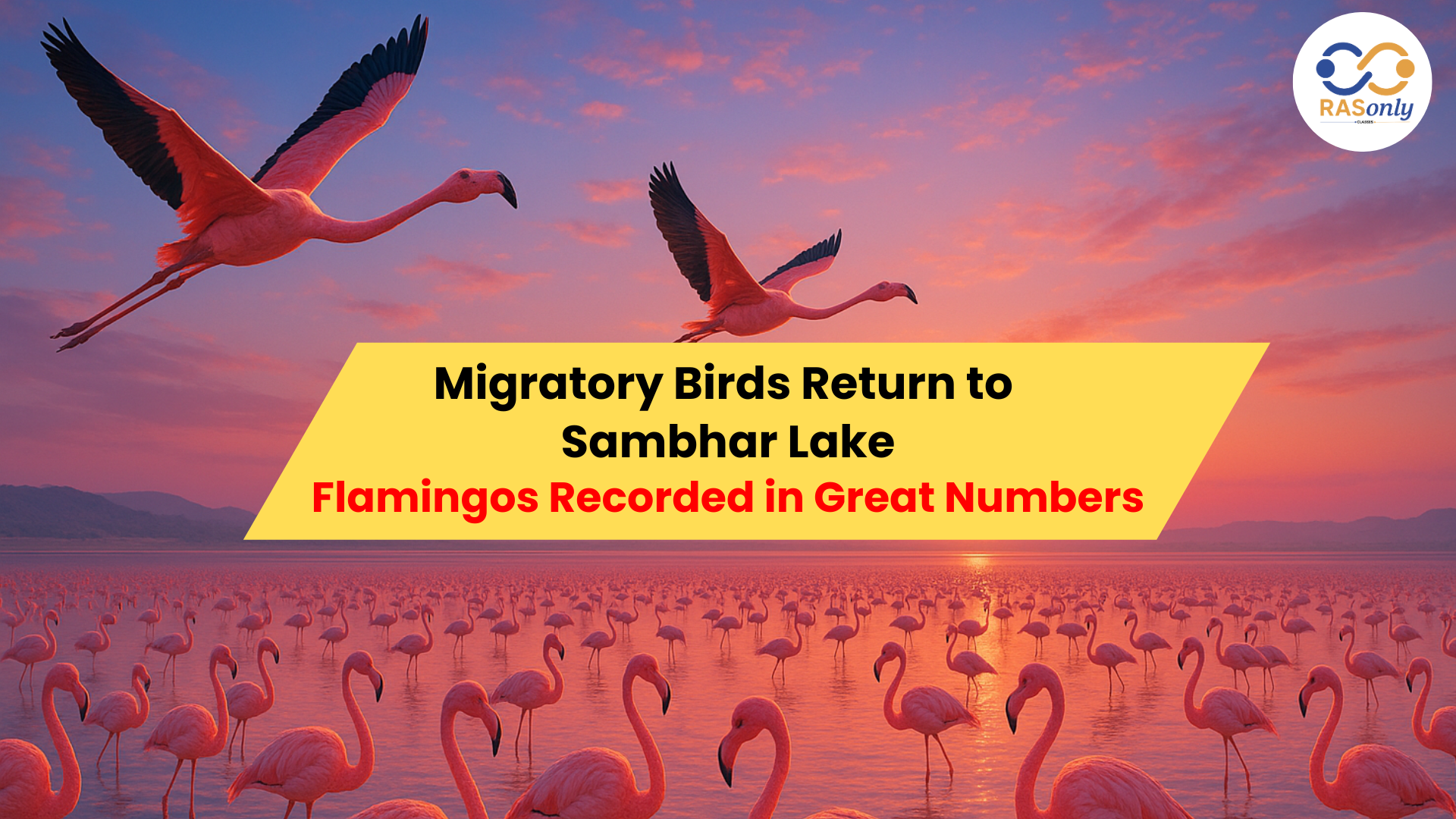 The article reports that flamingos have been sighted in their highest numbers this year at Sambhar Lake. Their return marks an ecological recovery after years of concern caused by avian botulism. Improved water levels and favourable habitat conditions have allowed large numbers of native and migratory birds to revisit the lake, strengthening its biodiversity and environmental stability.
