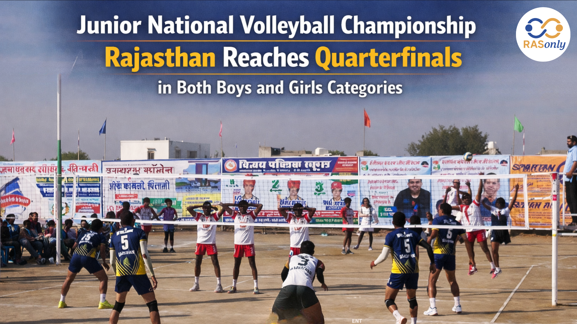 Rajasthan’s entry into the Quarterfinals in both categories of the 49th Junior National Volleyball Championship highlights strong youth-level performance, supported by decisive 3–0 victories in both Boys and Girls matches.