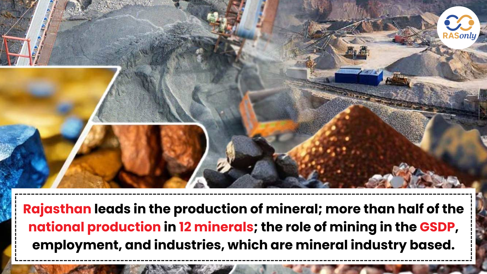 खनिज उत्पादन में राजस्थान की अग्रणी स्थिति; 12 खनिजों में देश के कुल उत्पादन का 50% से अधिक योगदान; GSDP, रोजगार और खनिज-आधारित उद्योगों में खनन क्षेत्र की भूमिका