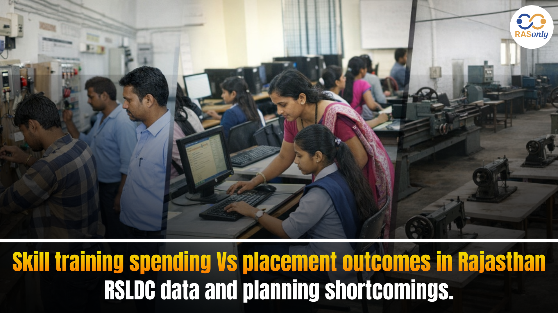 राजस्थान में कौशल प्रशिक्षण पर खर्च बनाम प्लेसमेंट के नतीजे; RSLDC डेटा और योजना की कमियाँ।