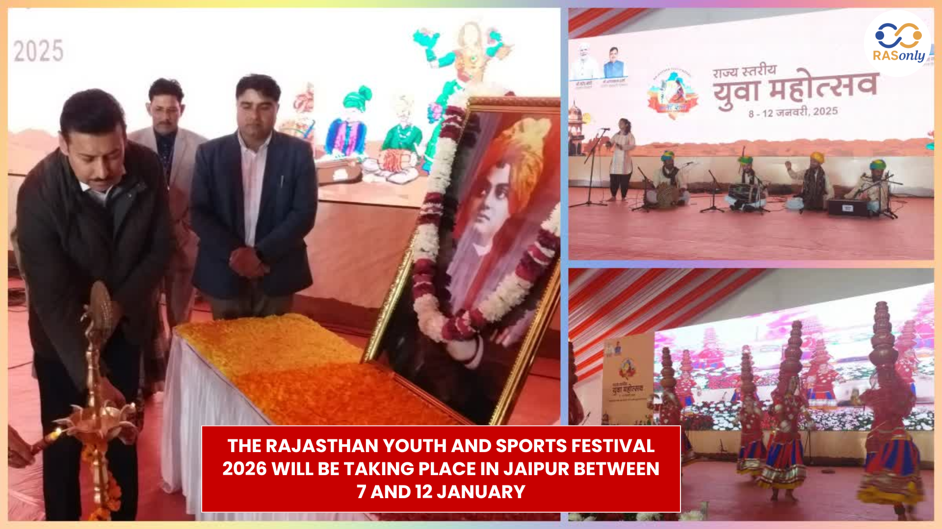 राजस्थान युवा एवं खेल महोत्सव 2026 जयपुर में 7 से 12 जनवरी के बीच आयोजित होगा, जिसमें युवा-केंद्रित प्रदर्शनियाँ, प्रतियोगिताएँ, पुरस्कार और विविध गतिविधियाँ शामिल होंगी।