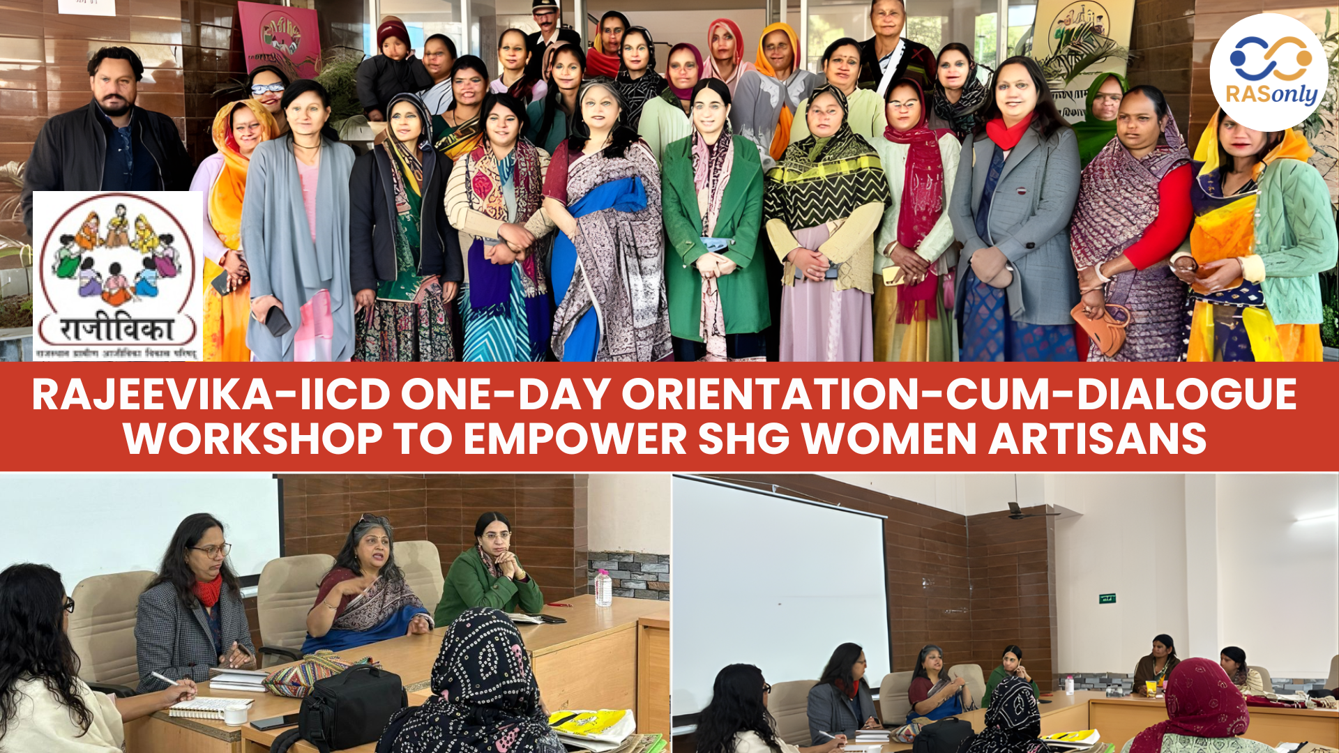 व्याख्या: चौपाल प्रशिक्षण केंद्र, जयपुर में आयोजित यह एक दिवसीय उन्मुखीकरण-सह-संवाद कार्यशाला राजीविका (राजस्थान राज्य ग्रामीण आजीविका विकास परिषद) और इंडियन इंस्टीट्यूट ऑफ क्राफ्ट्स एंड डिज़ाइन (आईआईसीडी) की संयुक्त पहल थी। - राजीविका–आईआईसीडी महिला आर्टिज़न कार्यशाला का प्रमुख उद्देश्य क्या था?