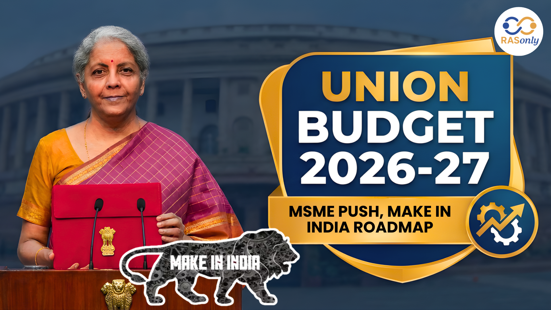 केन्द्रीय बजट 2026-27—एमएसएमई प्रोत्साहन, मेक इन इंडिया रोडमैप, सनराइज सेक्टर्स, रक्षा तथा पशुपालन समर्थन