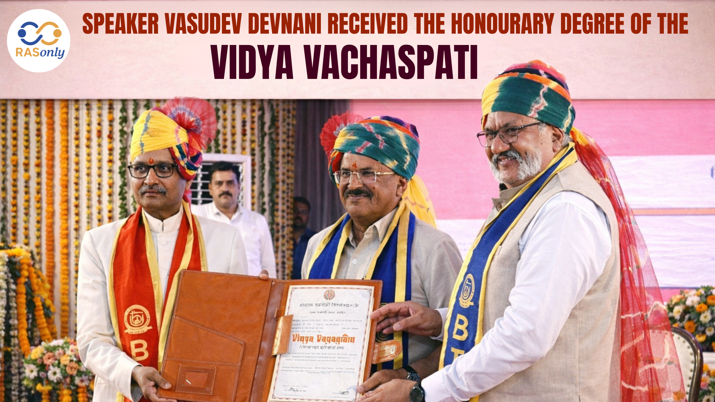 Vasudev Devnani was given the honorary degree of Vidya Vachaspati by Governor Haribhau Bagde, the same who is also the Chancellor, at the Lok Bhavan.