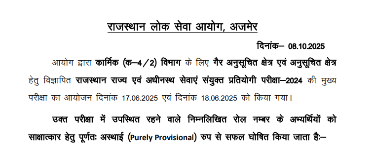 - Assignment: Successful candidates will be allocated to roles in Rajasthan State Services / Subordinate Services depending on the vacancies and their rank.